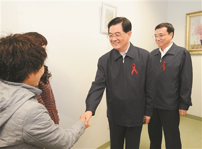 2008年12月1日是第21個世界艾滋病日。胡錦濤同志和李克強同志來到北京地壇醫院考察艾滋病防治工作。新華社記者 馬占成 攝