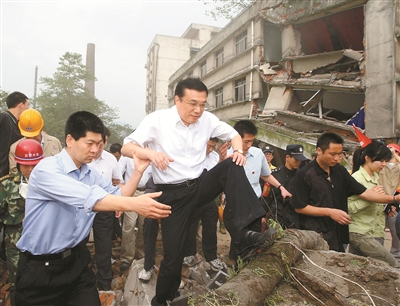 2008年5月19日,李克強同志在四川地震災區察看災情。 新華社記者 蘭紅光 攝