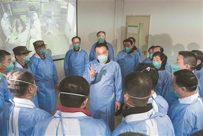 2020年1月27日,李克強同志赴湖北省武漢市考察指導疫情防控工作,代表黨中央、國務院慰問疫情防控一線的醫務人員。 新華社記者 李濤 攝