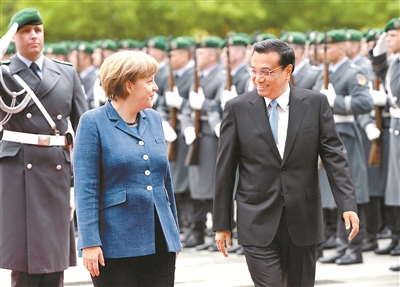 2013年5月26日,李克強同志在柏林出席德國總理默克爾舉行的歡迎儀式。 新華社記者 馬占成 攝