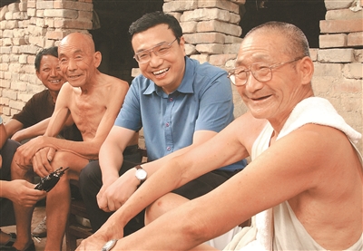 2003年8月8日,李克強同志在河南省新鄉市調研。這是李克強同志在原陽縣橋北鄉馬莊村與村民親切交談。 新華社發(郭宇 攝)